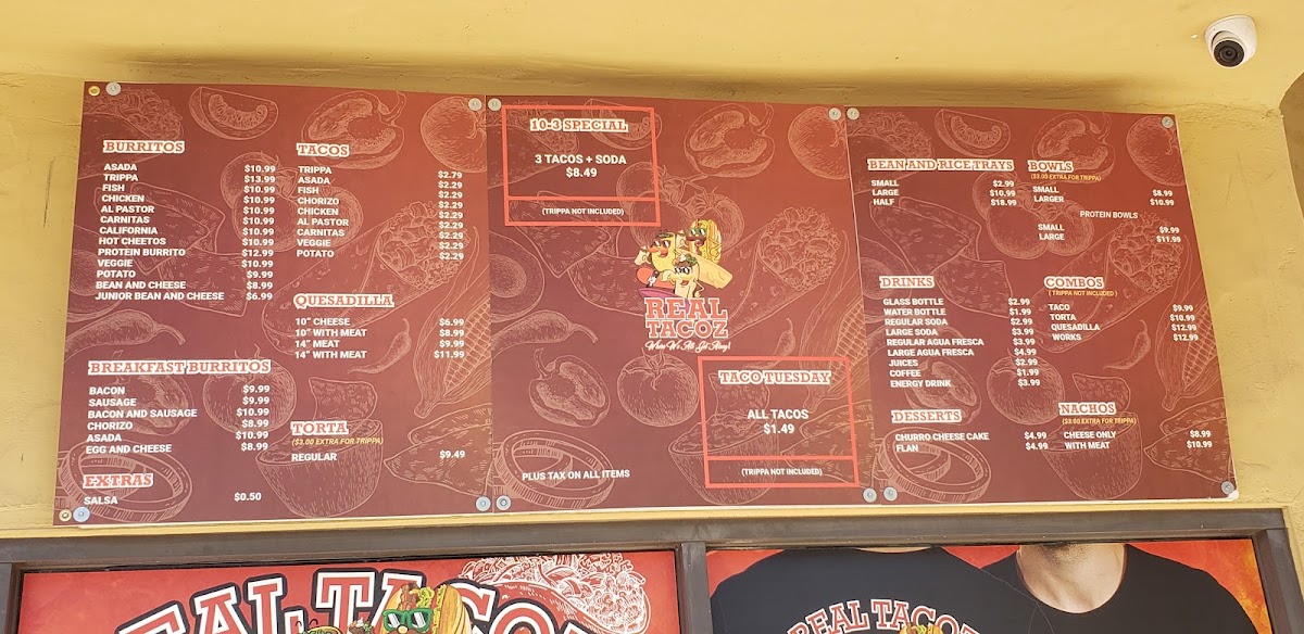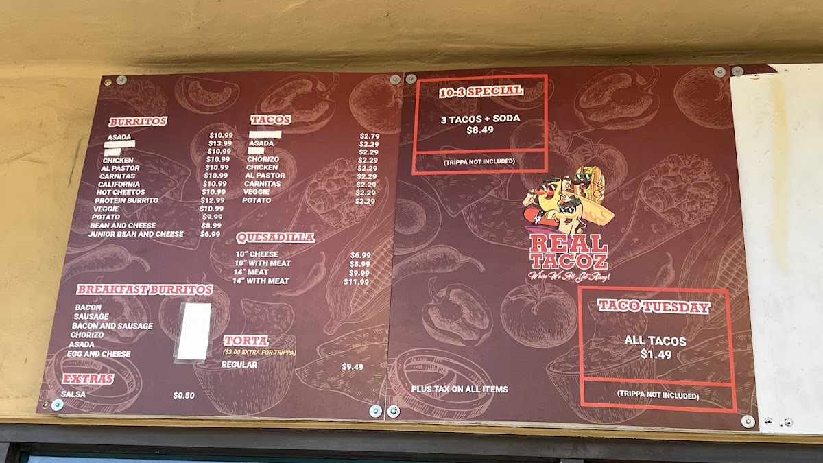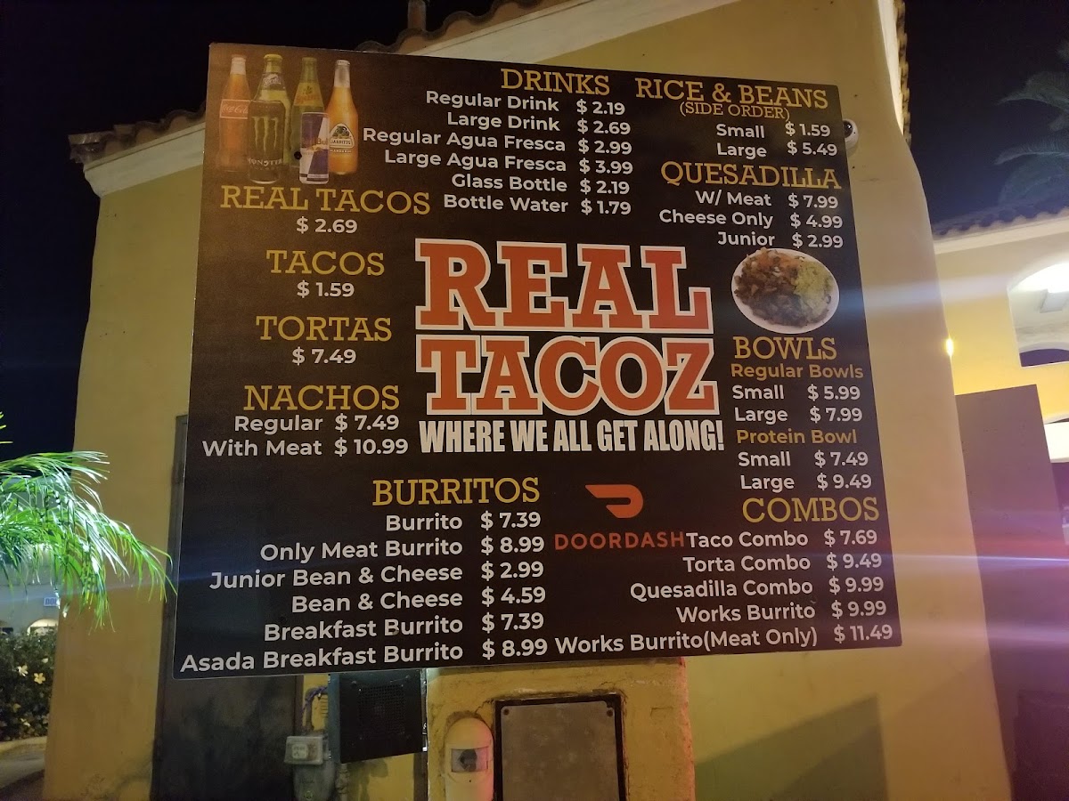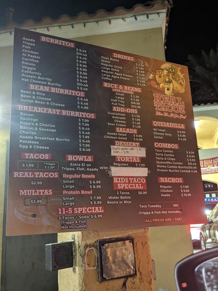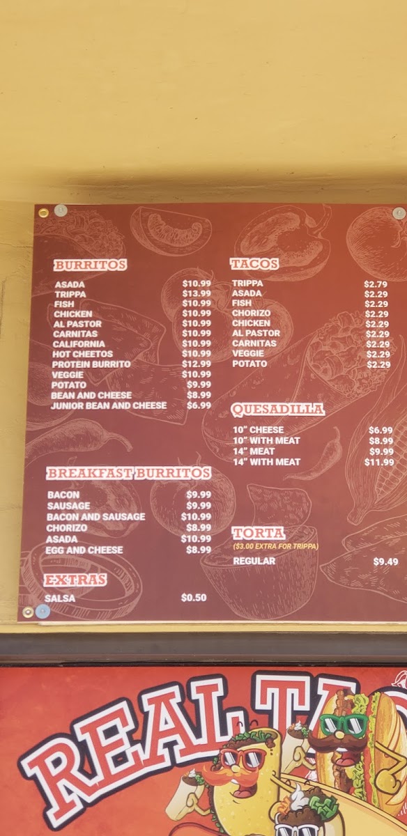 Real Tacoz offers a straightforward, casual menu that feels like a comforting snapshot of classic Mexican fast food. The selection leans on familiar favorites like tacos, burritos, and nachos, along with some satisfying breakfast options that work well for a quick meal any time of day. Whether you're grabbing a bite before work or stopping by for an easy lunch, the dishes here fit a laid-back atmosphere where convenience and flavor come together.